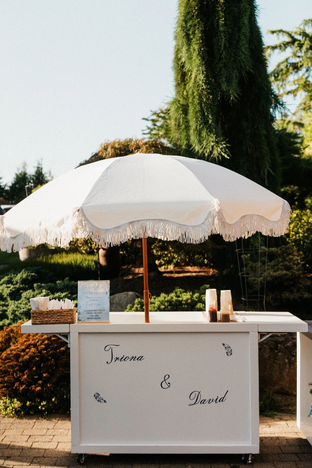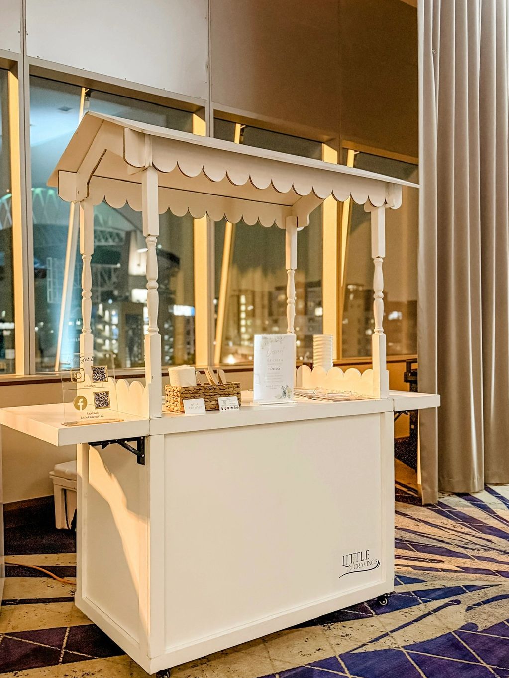 Adding a second option for our clients to choose from — a simple, elegant cart topped with a cute umbrella (available in white, black, or pink). This cart has become a favorite for summer outdoor events, offering a light and charming setup that fits beautifully into any celebration.
